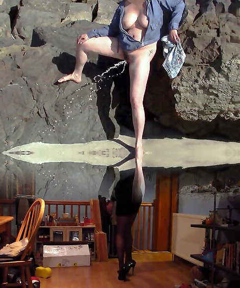 Huge-boobed Mature has energy piss at the Beach