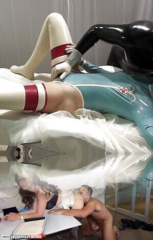 The patient is examining the doctor and the doctor is playing with herself 2 angle Full long cowgirl riding