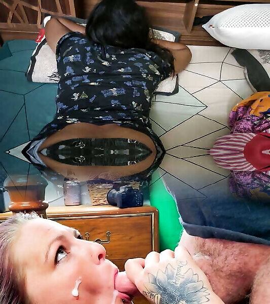 The stepdaughter shares the bed with her stepfather and works her hard out of the confusion