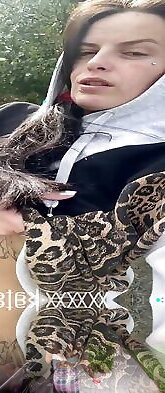 Mommy nearly got caught by amblers as she plays with her awesome tits whilst walking along the river in the spring sun