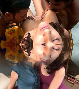 Two Indian dudes please busty and pregnant girl